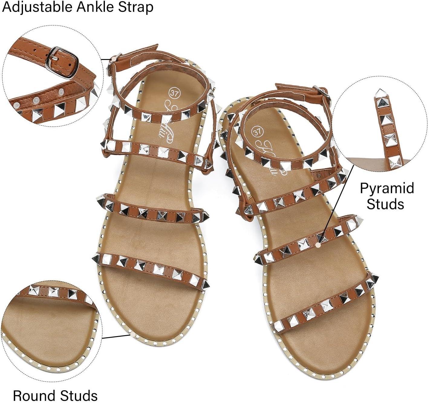 - Don't miss out on our limited-time offer: buy katliu Women's Flat Sandals Strappy Studded Sandals Gladiator Sandals with Ankle Strap(Dark Brown), get a free {accessory}!