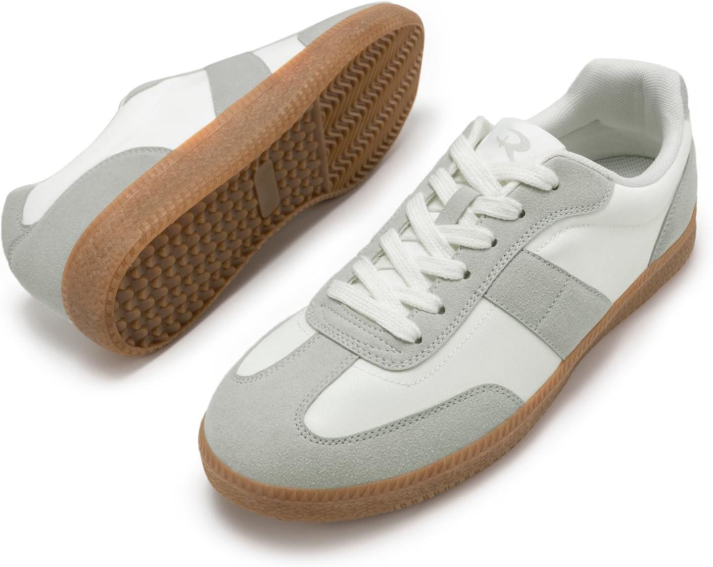 Rihero Men’s Fashion Sneakers Comfortable Tennis Walking Shoes Lace-Up Non Slip Casual Sneakers(White)