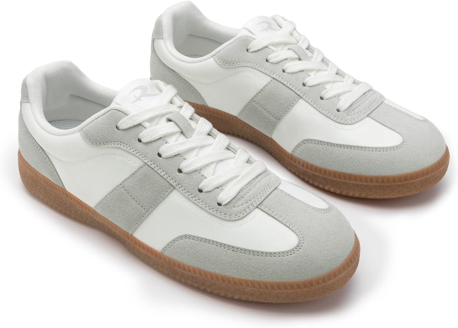 Rihero Platform Sneakers for Women Comfortable Fashion Retro Sneakers Casual Non-Slip Tennis Walking Shoes(White)