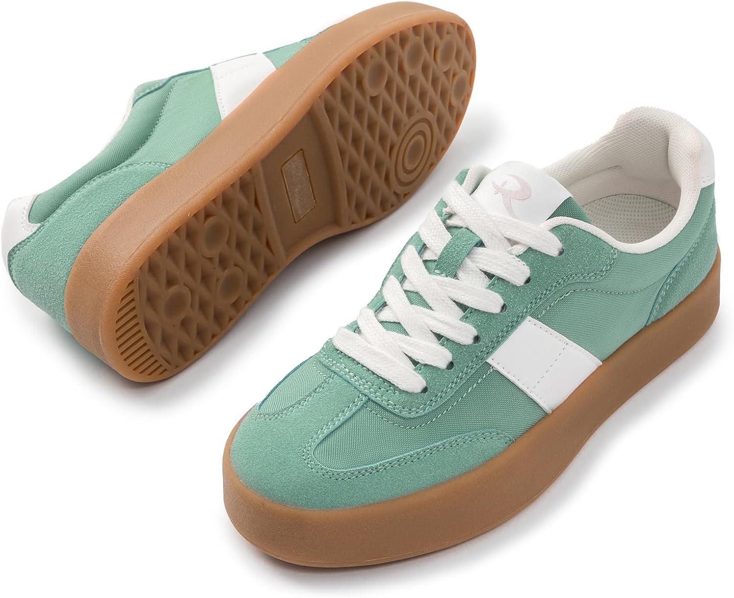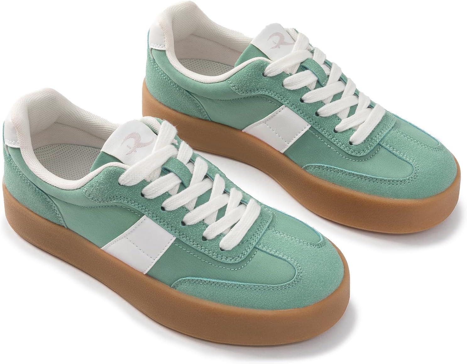 Rihero Platform Sneakers for Women Comfortable Fashion Retro Sneakers Casual Non-Slip Tennis Walking Shoes(Green)