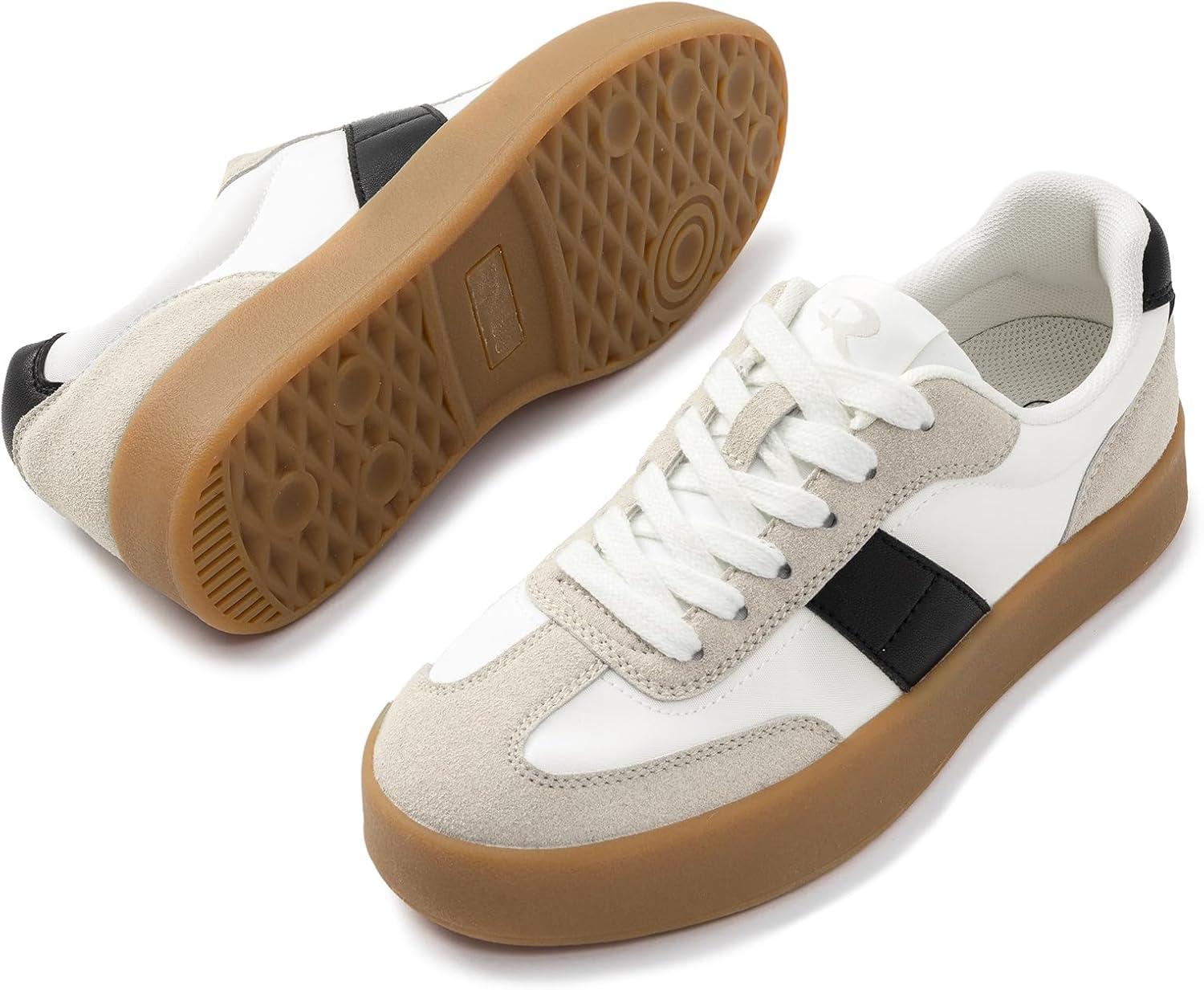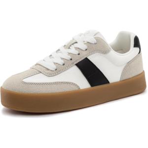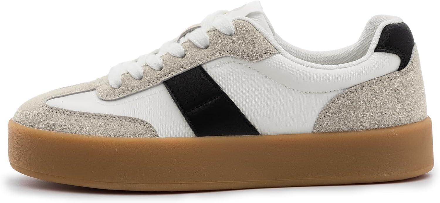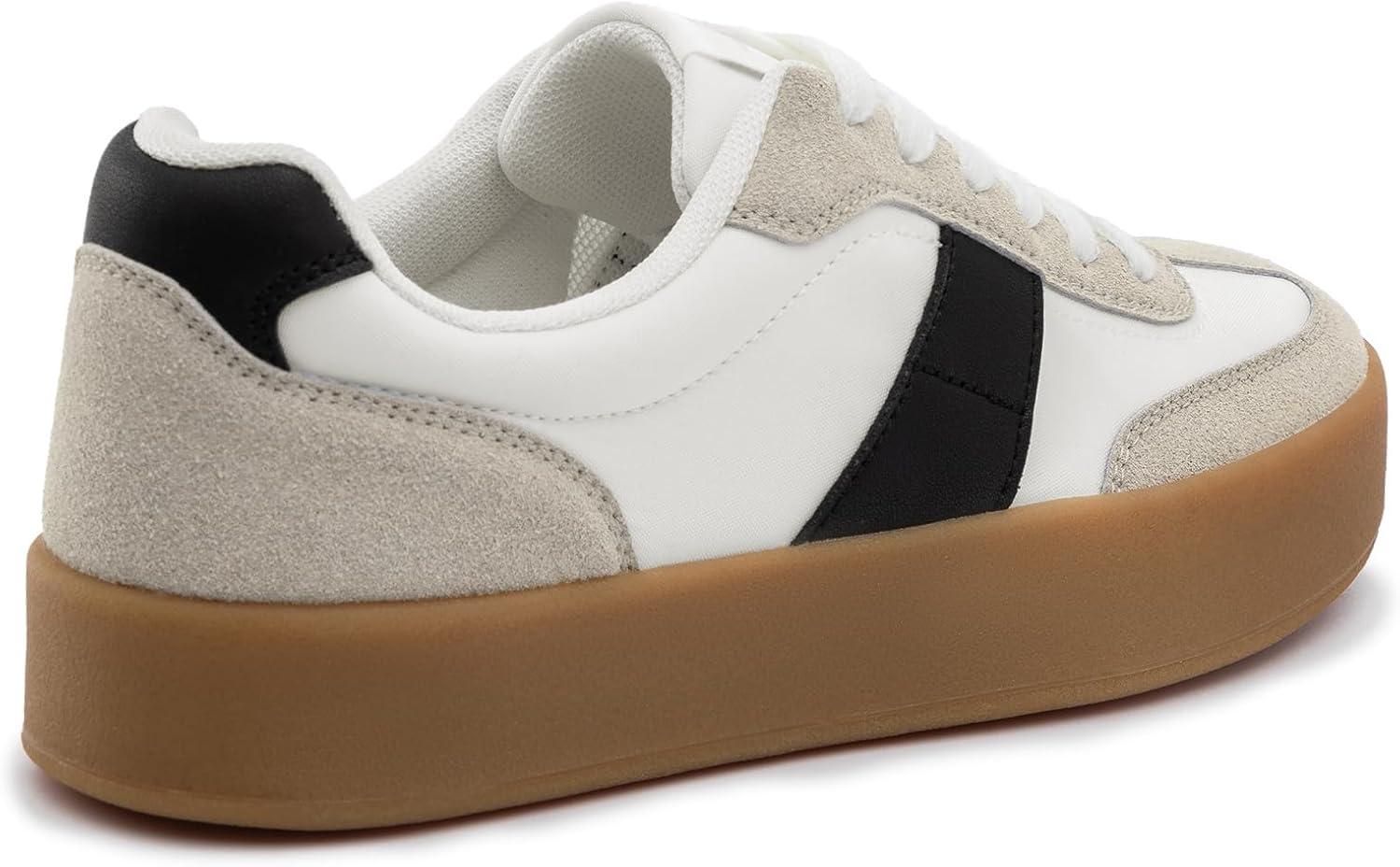 Rihero Platform Sneakers for Women Comfortable Fashion Retro Sneakers Casual Non-Slip Tennis Walking Shoes(White Black)