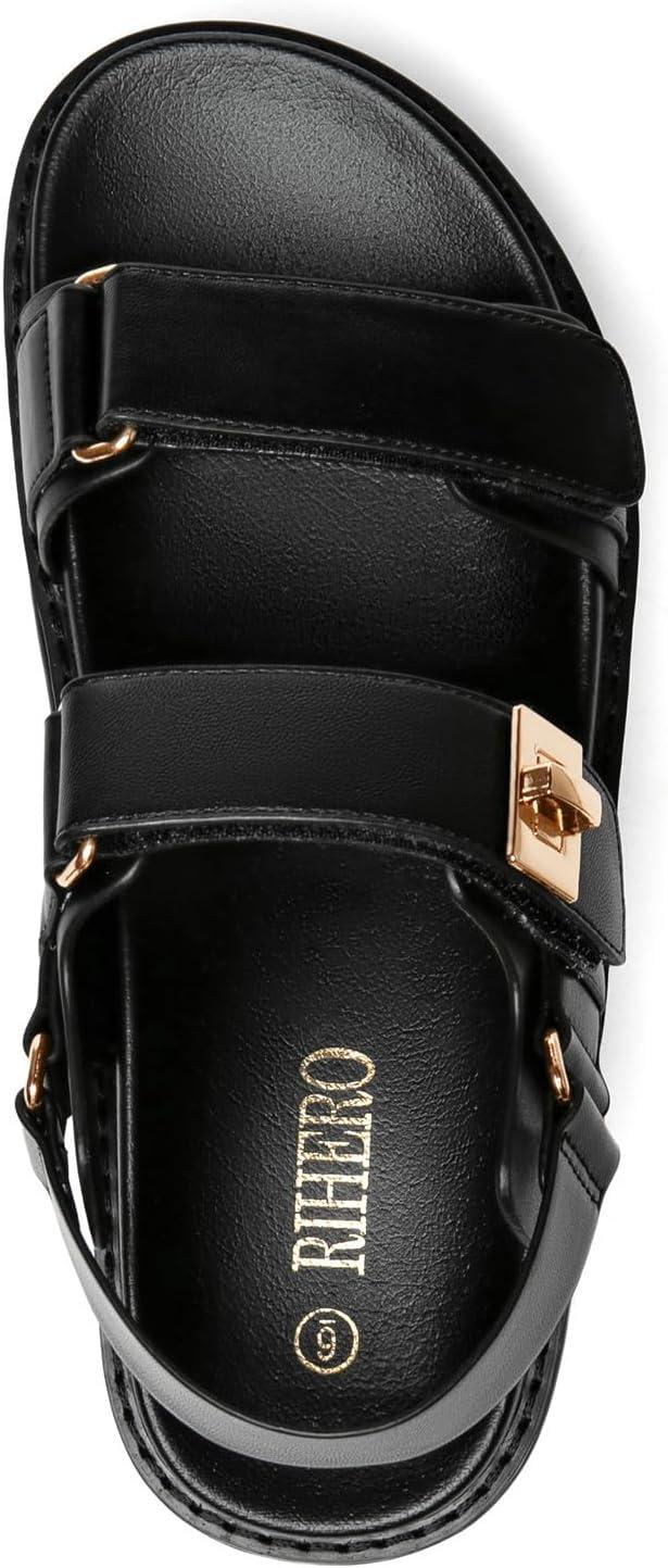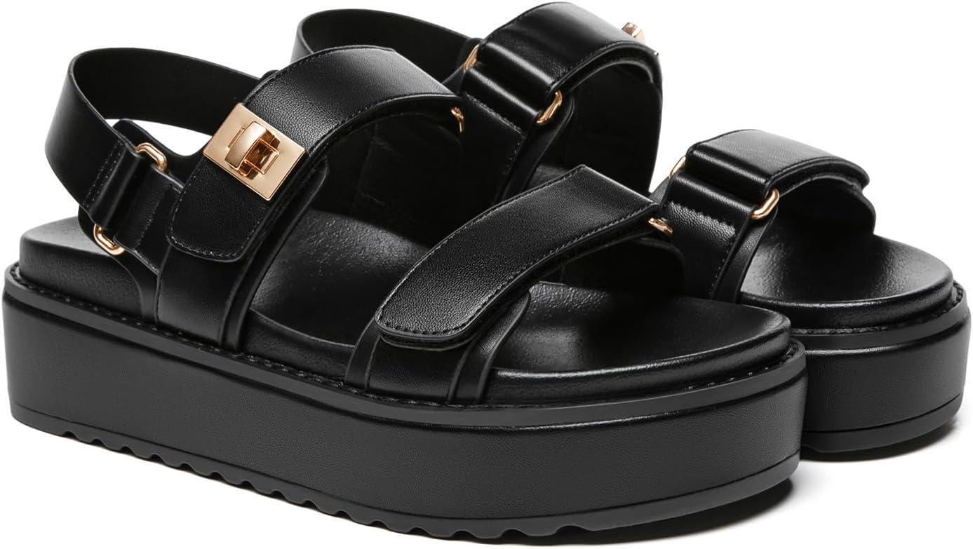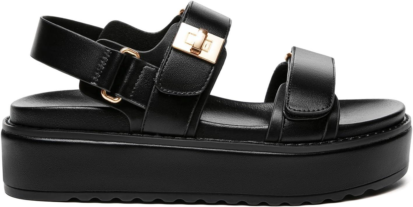 Rihero Women’s Comfortable Open Toe Platform Sandals Fashion One Band Summer Dressy Flatform Sandals(Black)