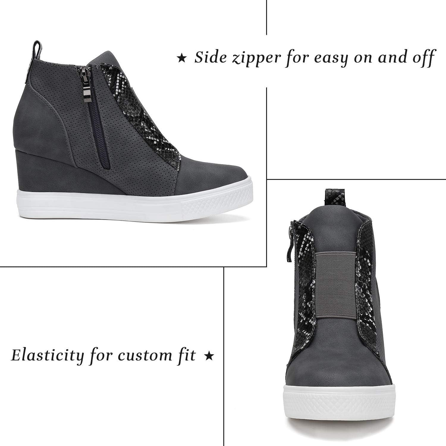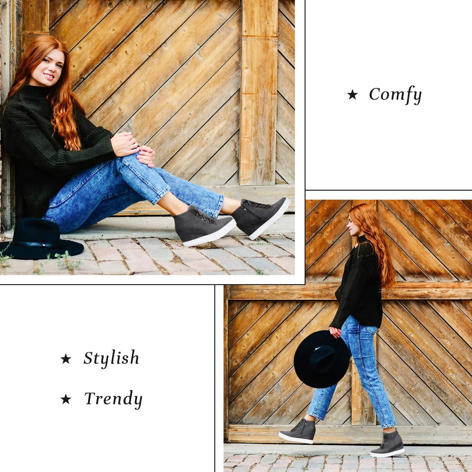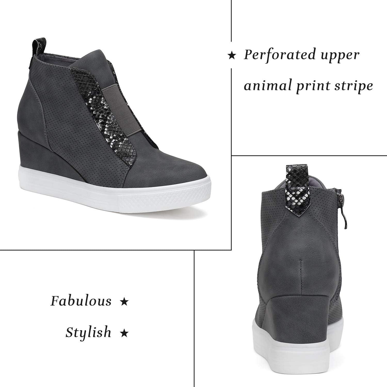 katliu Women’s Wedge Sneakers Platform Wedge Shoes Animal Print Wedge Booties Dark grey