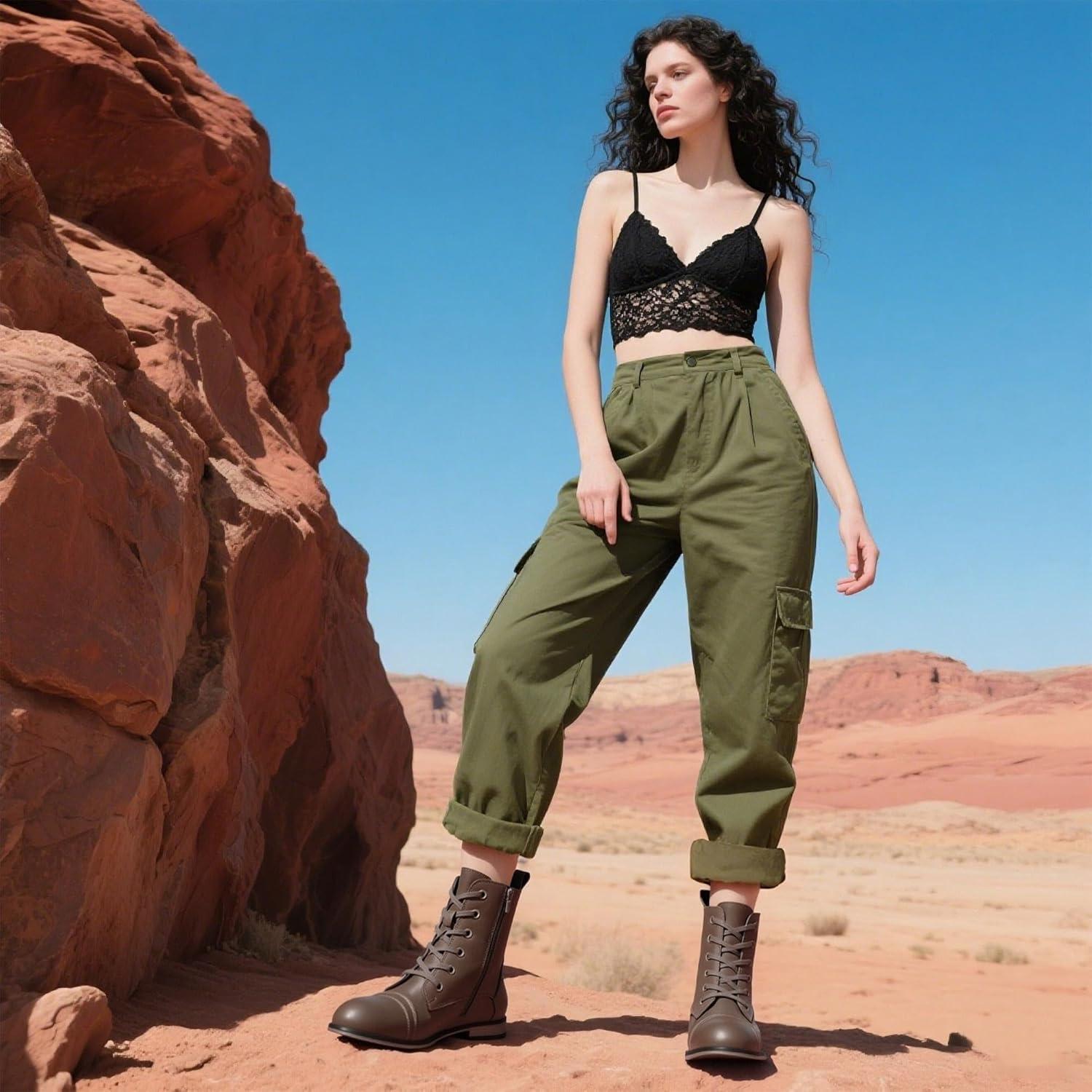katliu Women’s Combat Boots Lace up Military Ankle Boots Side Zipper Round Toe Booties(Coffee)
