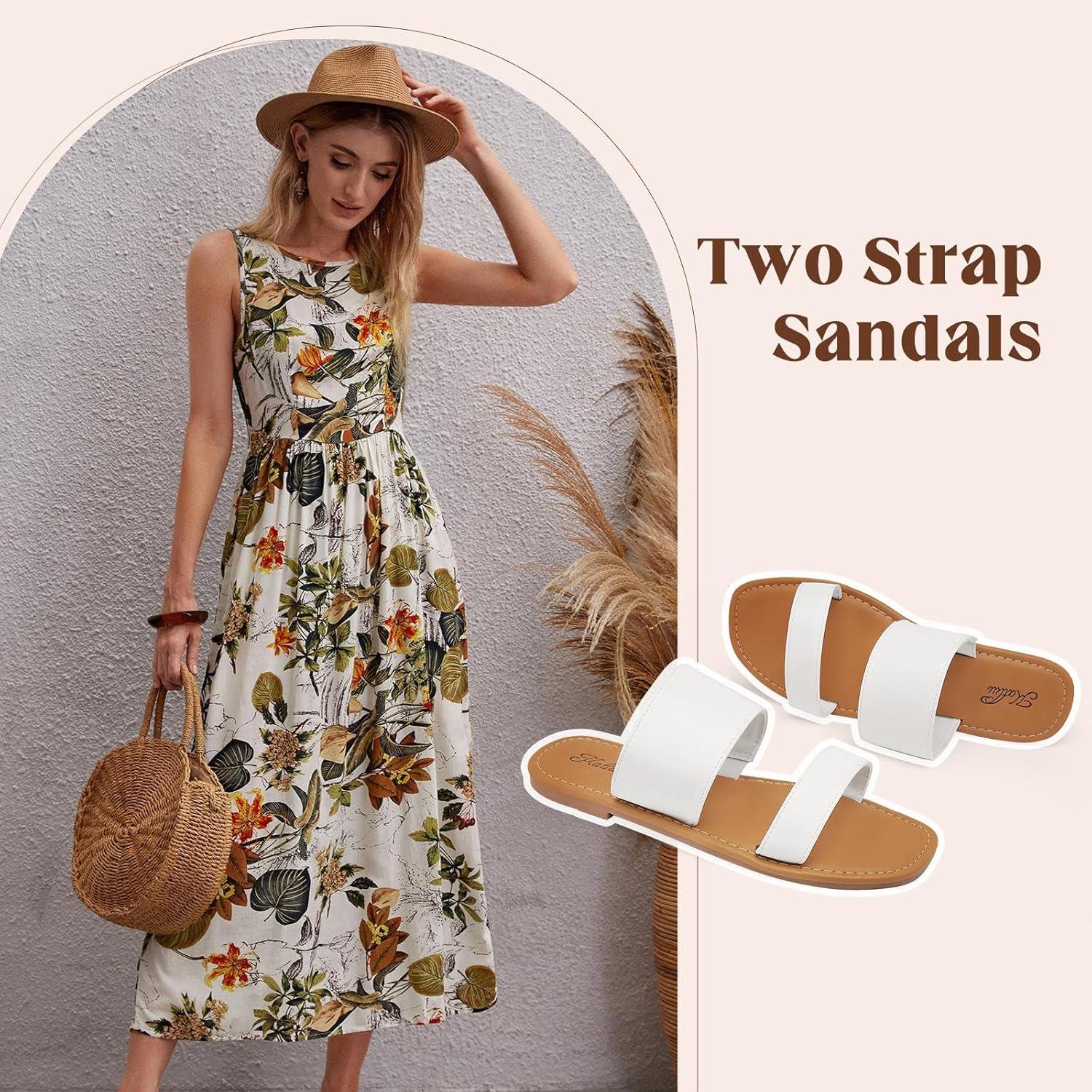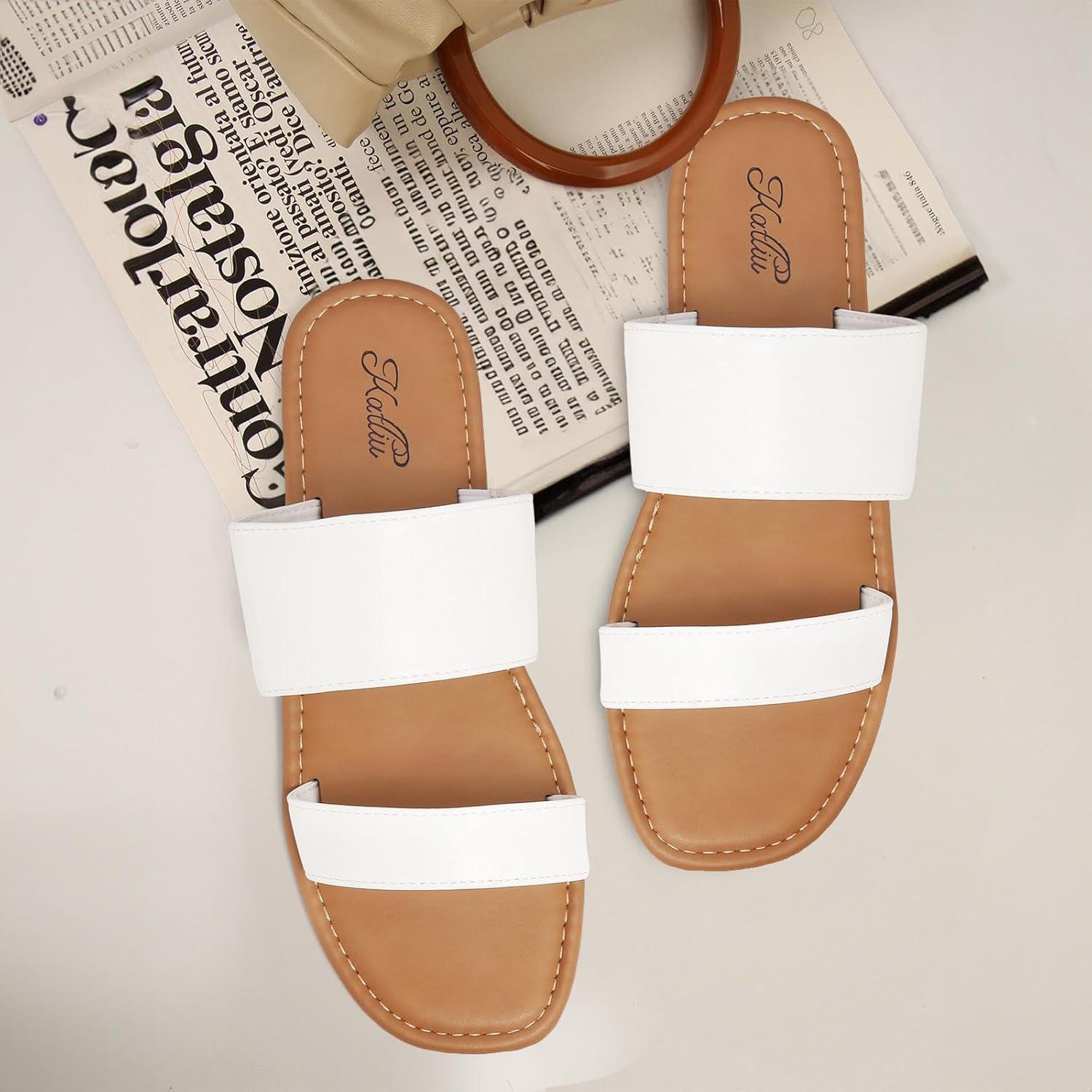 katliu Women’s Flat Sandals Two Strap Slide Sandals Open Toe(Snow White)