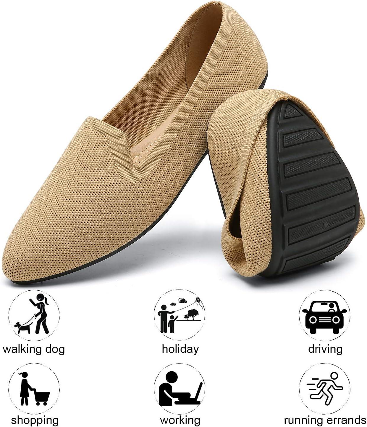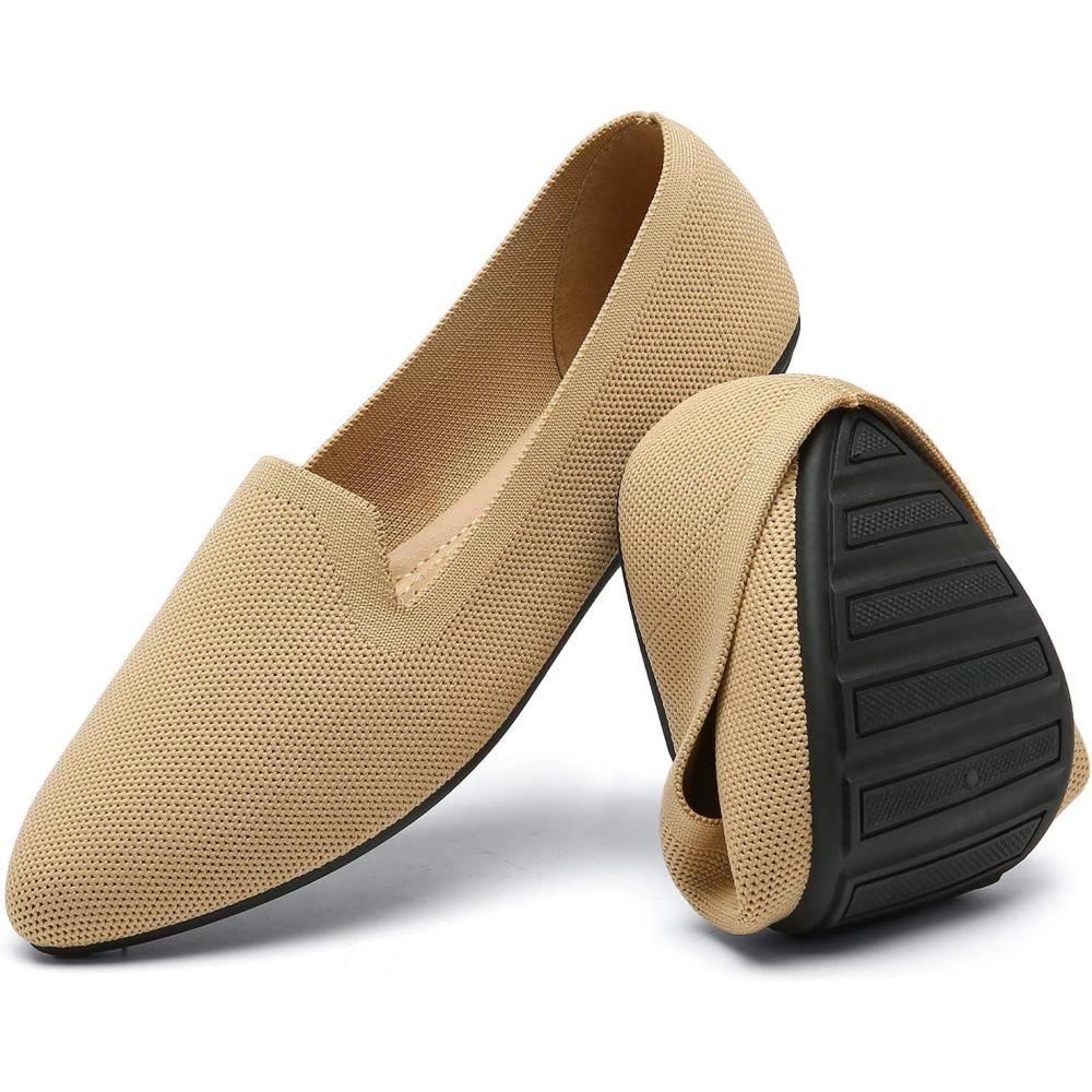katliu Women’s Flats Knit Comfort Pointed Toe Ballet Flats Shoes Casual Slip On Shoes(Apricot)