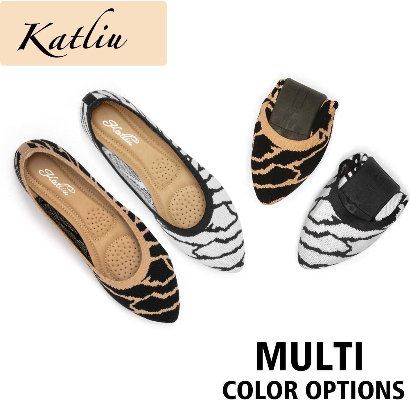 katliu Women’s Flats Knit Comfort Pointed Toe Ballet Flats Shoes Casual Slip On Shoes(Dark Grey)