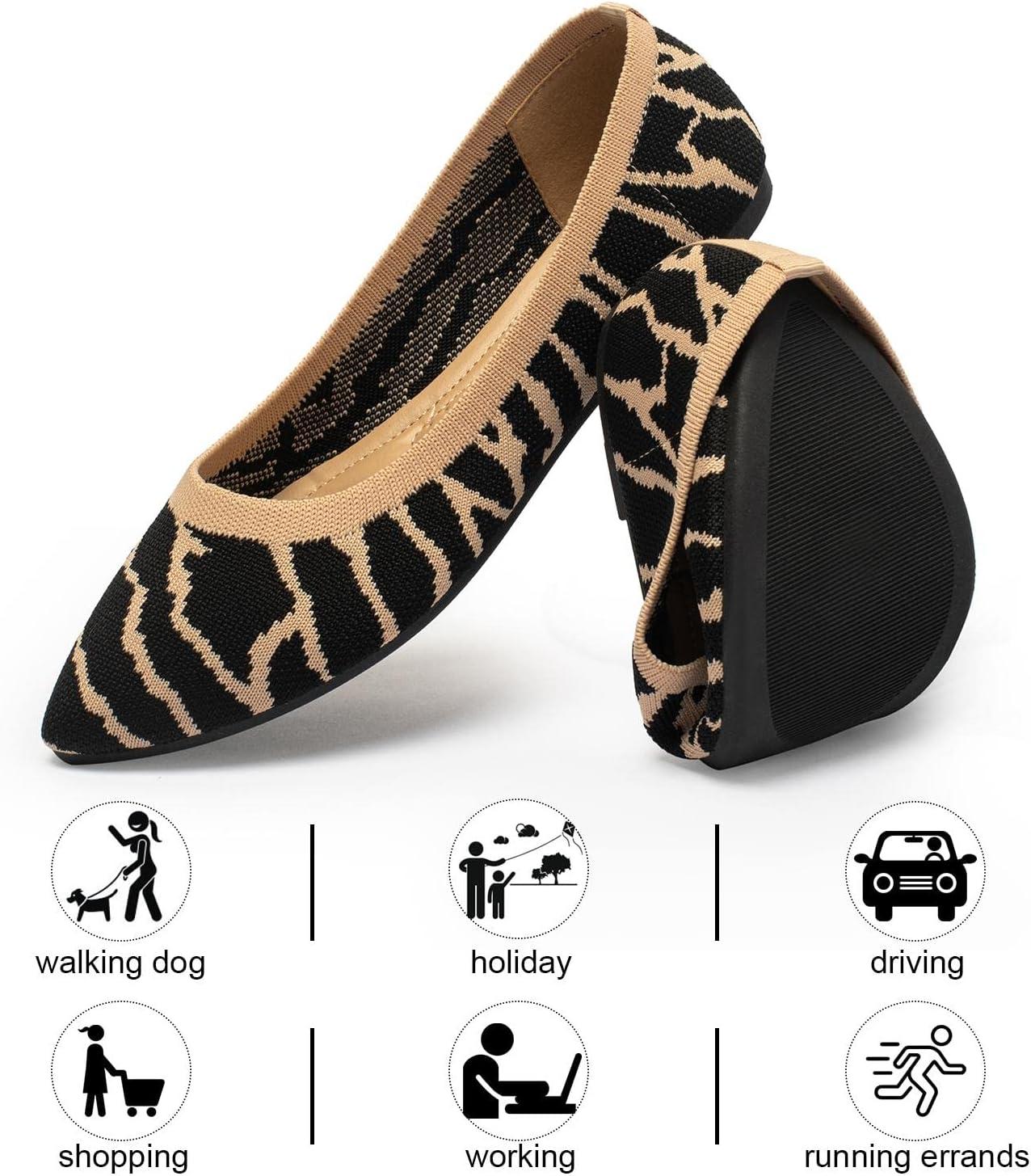 katliu Women’s Flats Knit Comfort Pointed Toe Ballet Flats Shoes Casual Slip On Shoes(Stripes Black)