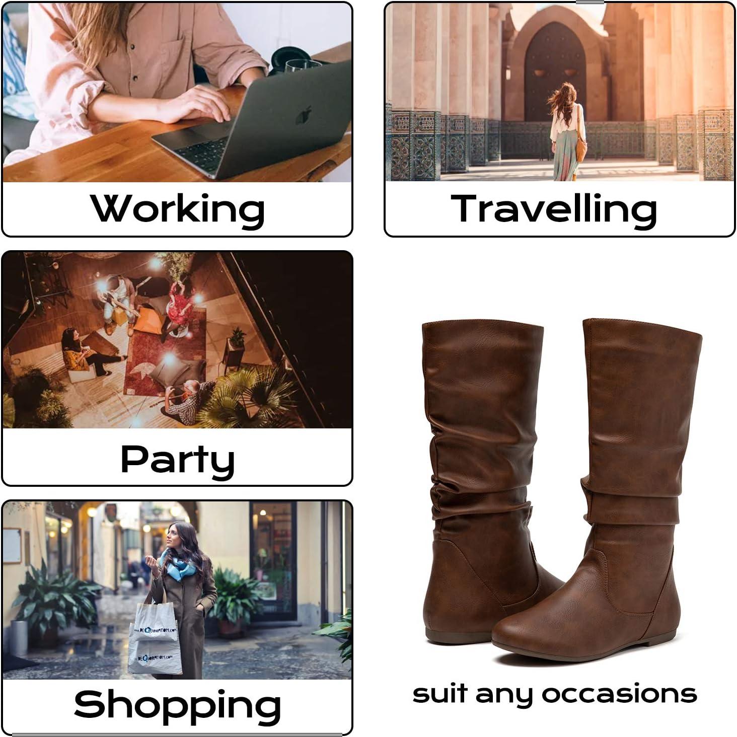 Get your hands on our exclusive katliu Women’s Slouchy Mid Calf Boots Zip up Flat Boots(Brown) collection, now at a discounted price.