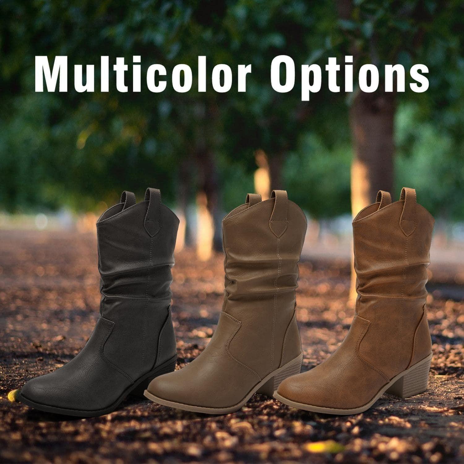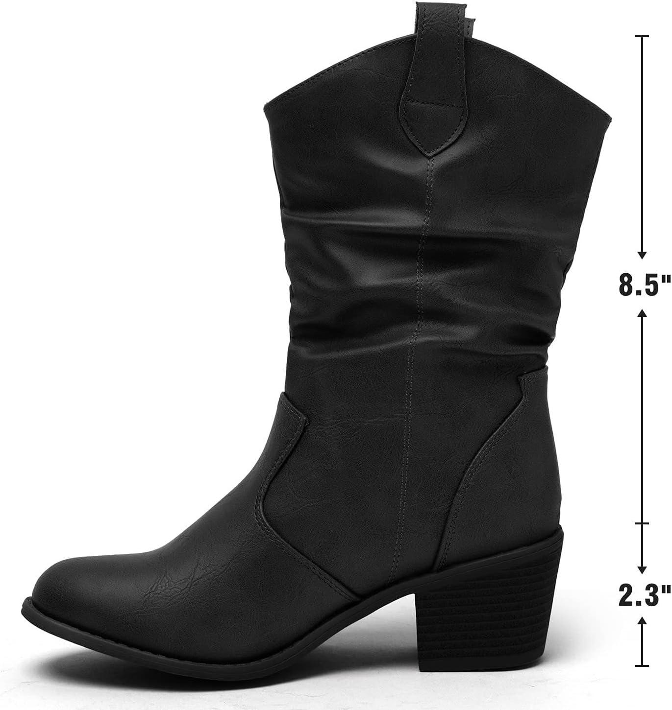katliu Women’s Western Cowboy Boots with Pull-Up Tabs Mid-Calf Boots Low Heel Black Size 9.5