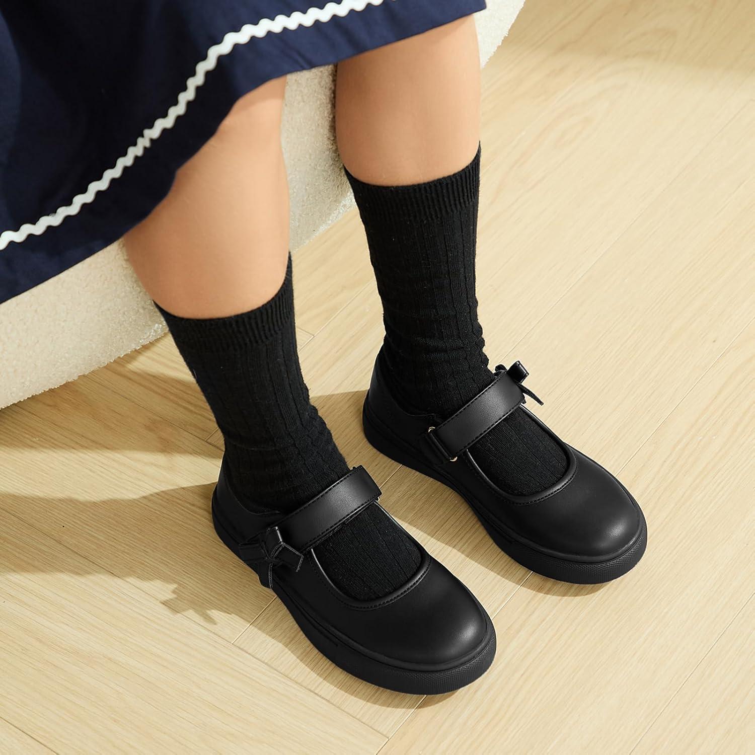 Rihero Girls Sneakers Kids School Uniform Mary Jane Shoes Casual Walking Shoes for Toddler Little Big Kids(Black)