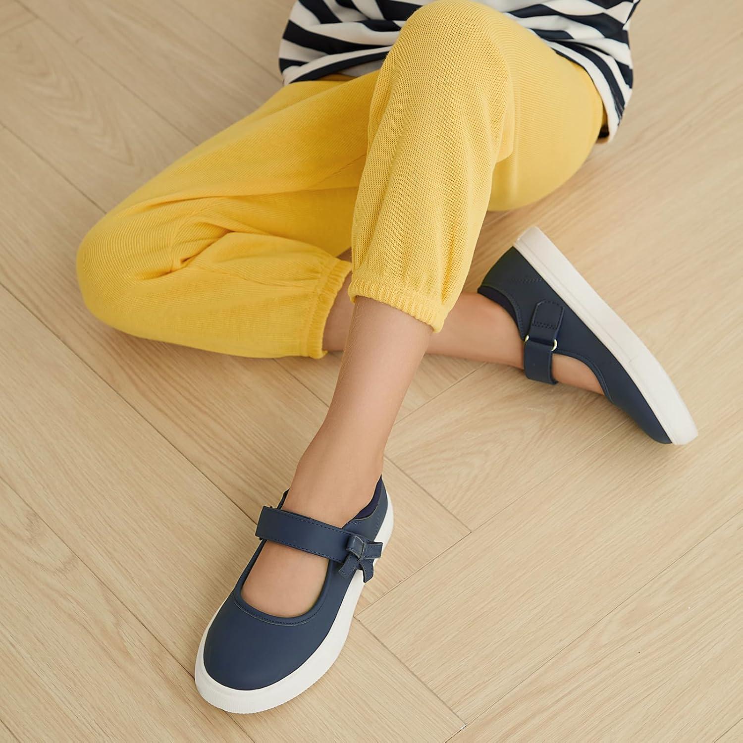 Rihero Girls Sneakers Kids School Uniform Mary Jane Shoes Casual Walking Shoes for Toddler Little Big Kids(Navy)