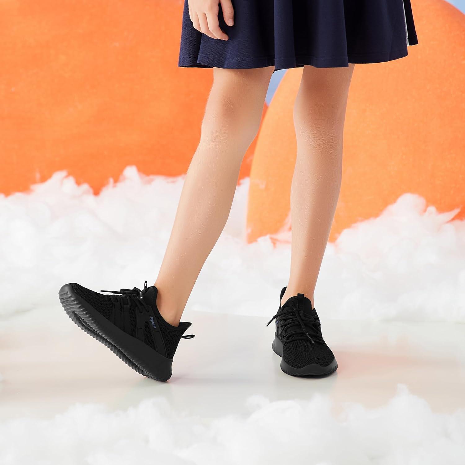 Rihero Girls Tennis Shoes Kids Running Shoes Toddler Lace-Up Lightweight Walking Slip On Sneakers(Black)