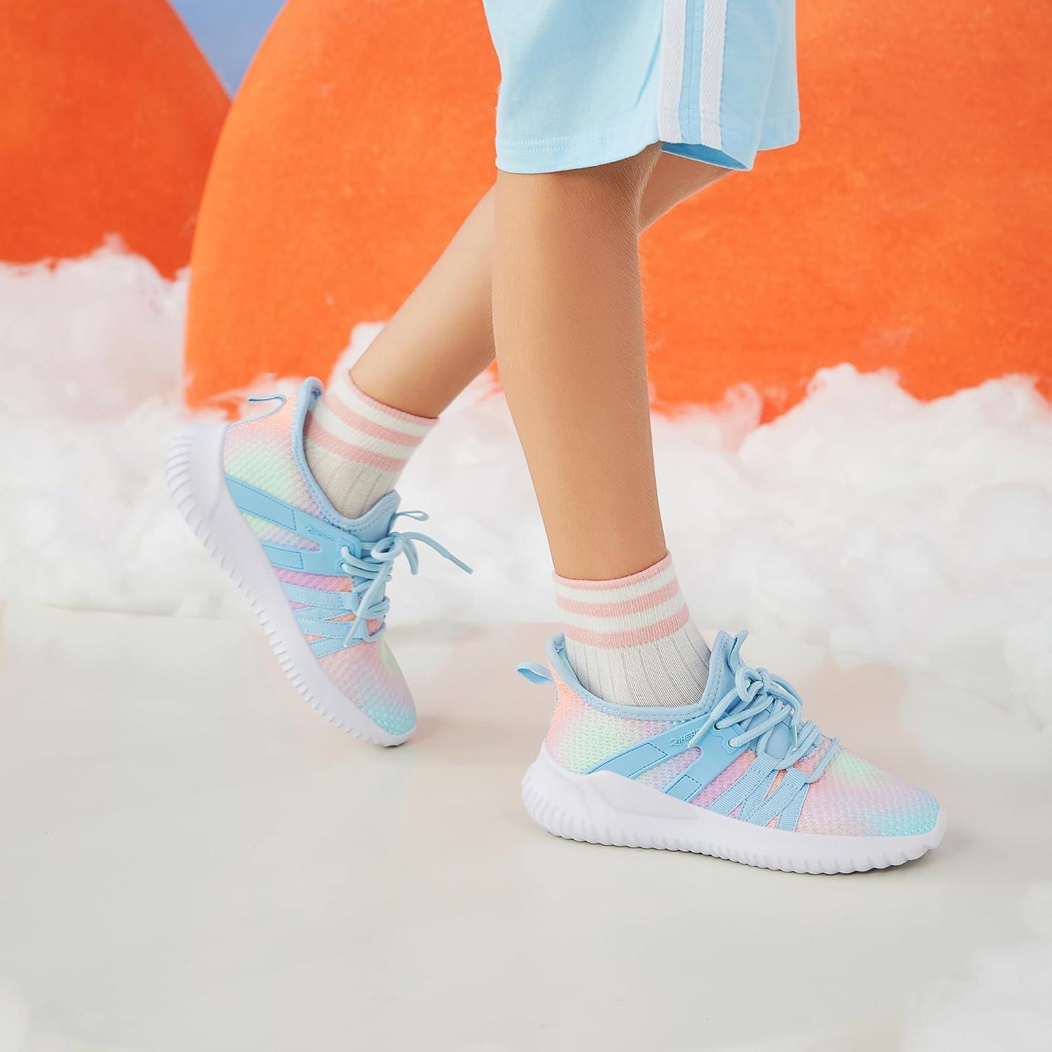 Rihero Girls Tennis Shoes Kids Running Shoes Toddler Lace-Up Lightweight Walking Slip On Sneakers(Gradient Blue)