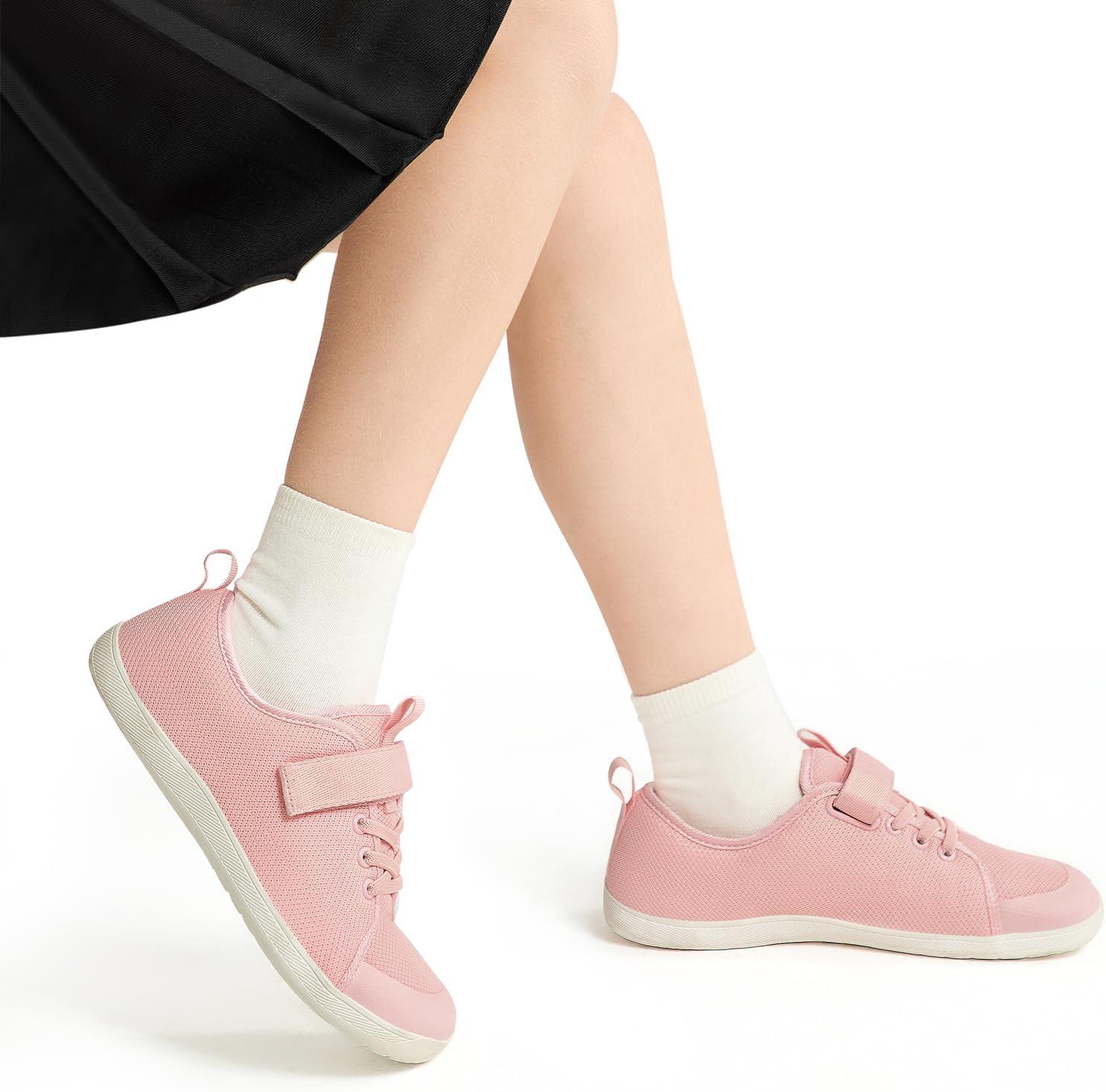 Rihero Kids Barefoot Shoes Boys Girls Wide Toe Box Walking Shoes Breathable Toddler Little Big Kid Sneakers(Pink)