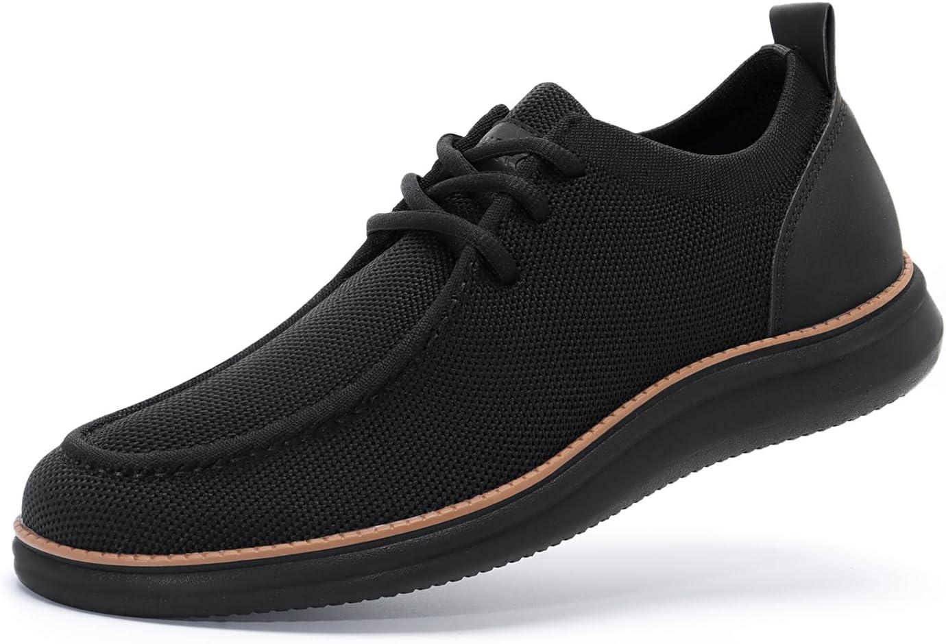 Rihero Mens Casual Shoes Wide Loafers Comfortable Walking Slip On Lightweight Breathable Lace Up Shoes(Black)