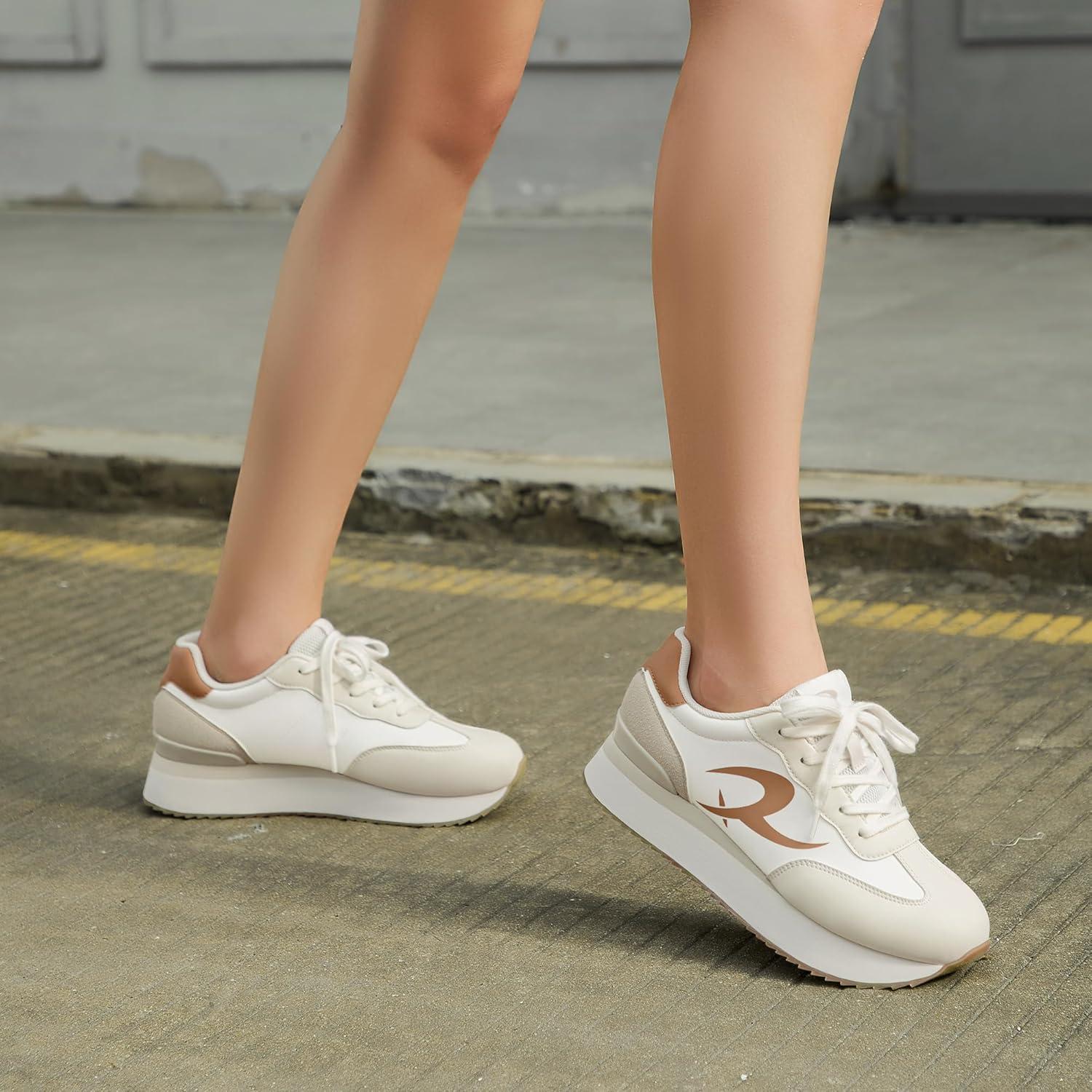 Rihero Women’s Platform Sneakers Casual Lace Up Non Slip Tennis Walking Shoes Comfortable Lightweight Chunky Fashion Sneakers(Beige)