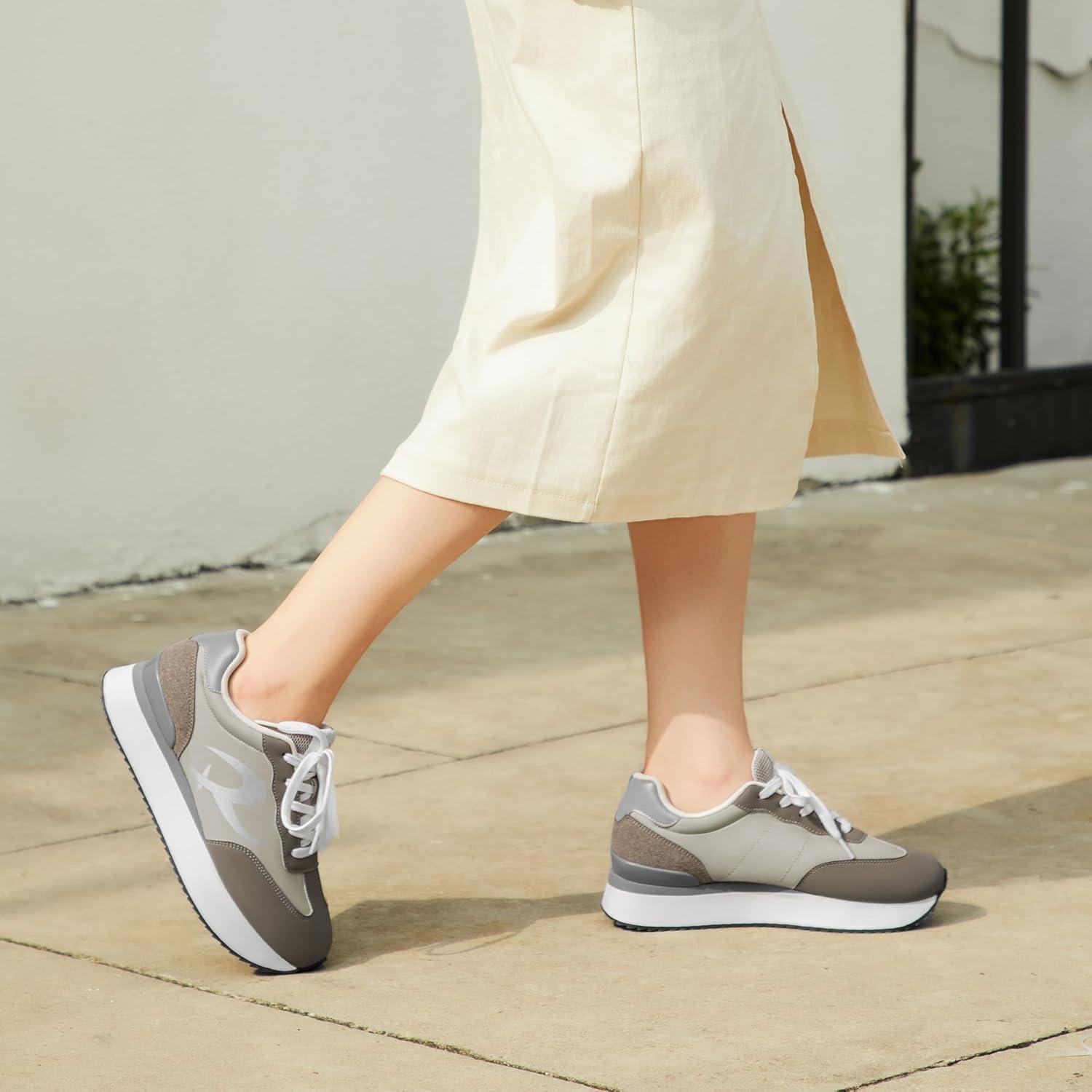 Rihero Women’s Platform Sneakers Casual Lace Up Non Slip Tennis Walking Shoes Comfortable Lightweight Chunky Fashion Sneakers(Grey/Silver)