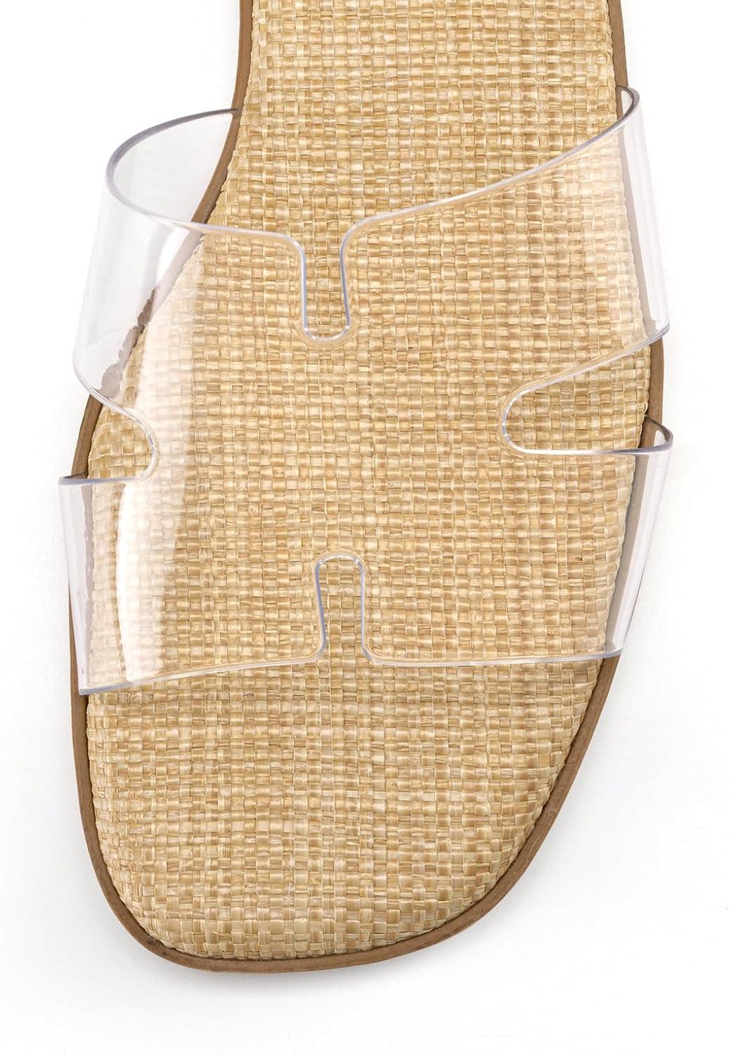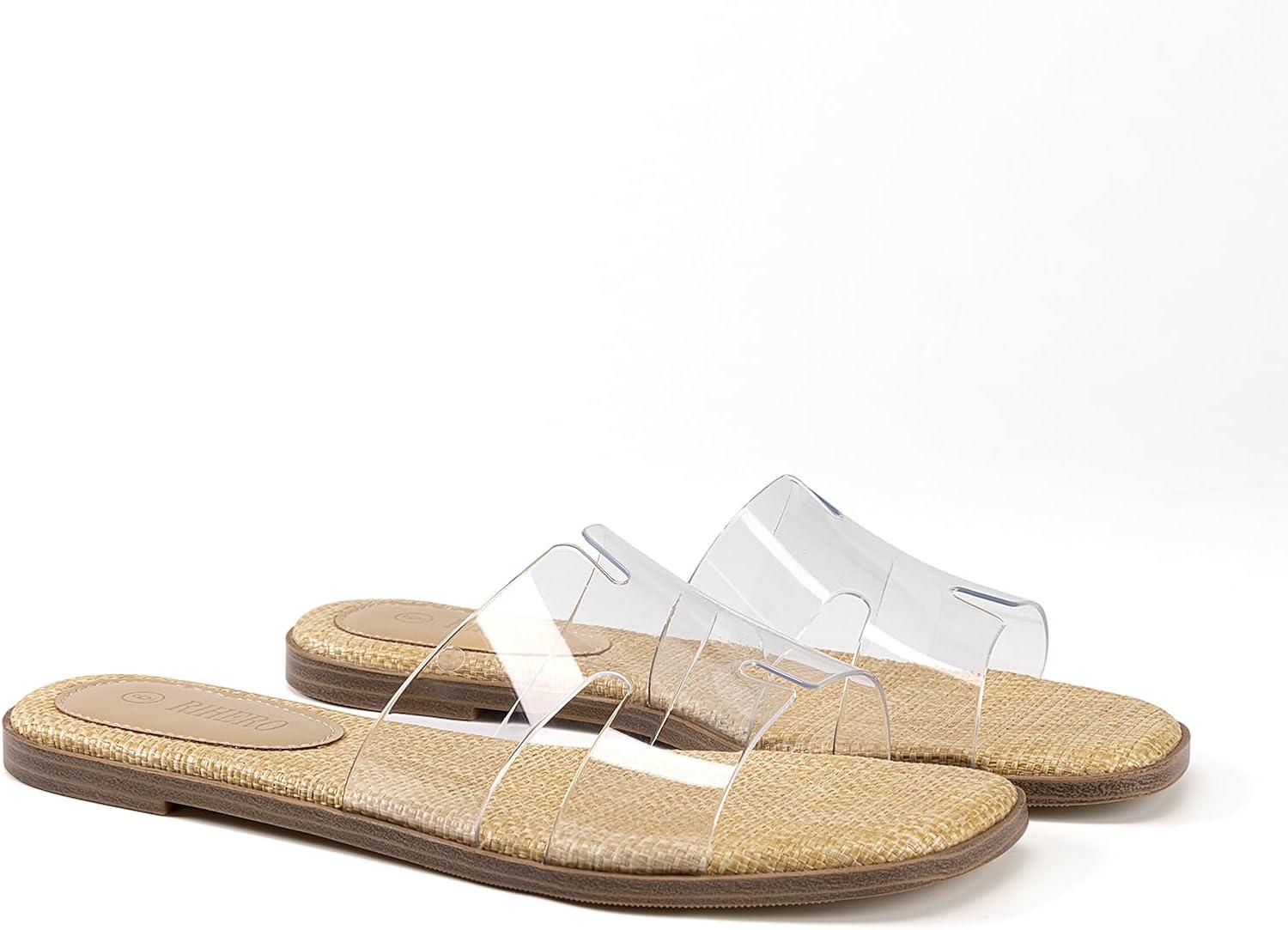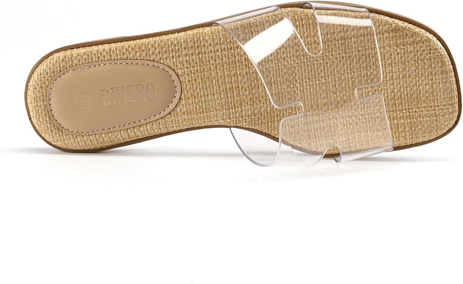 Rihero Women’s Slide Sandals Comfortable Square Toe Beach Slip On Strappy Thong Flat Sandals(Silver)