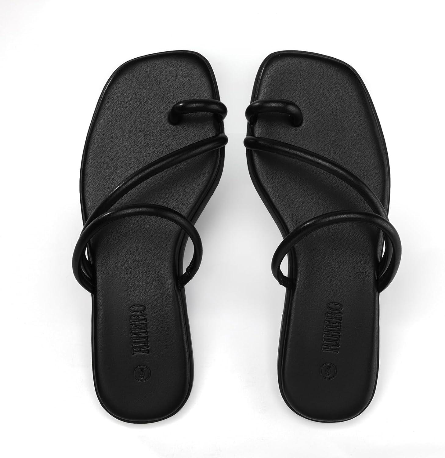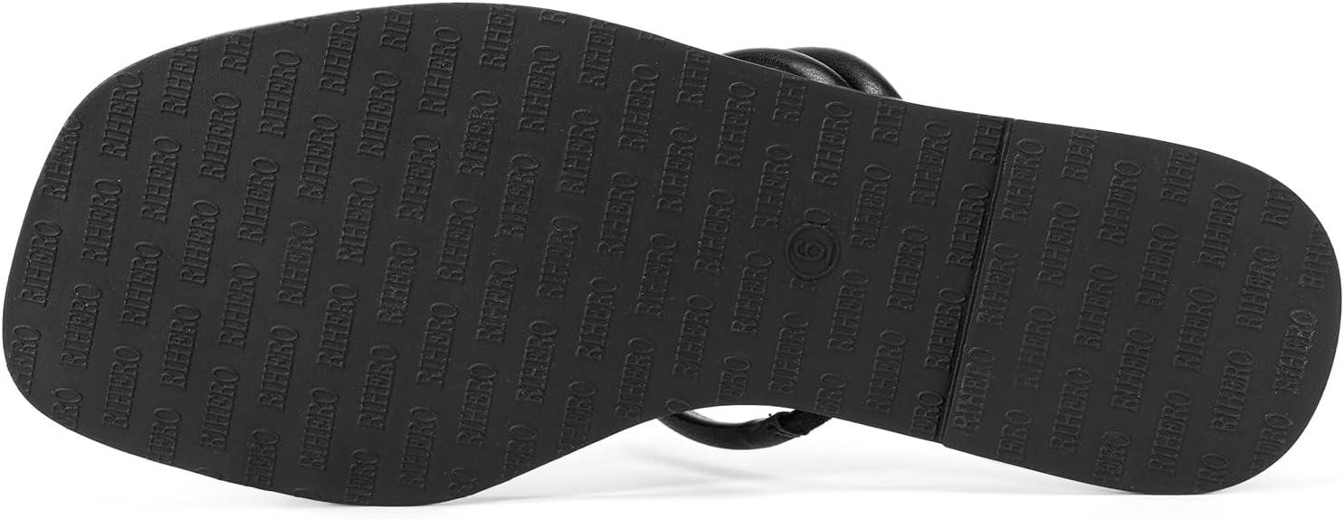 • Rihero Women’s Flip Flops Square Toe Thong Flat Sandals Summer Comfortable Slip On Beach Slide Sandals(Black)
