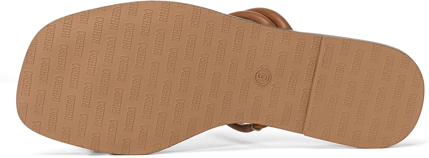 • Rihero Women’s Flip Flops Square Toe Thong Flat Sandals Summer Comfortable Slip On Beach Slide Sandals(Mocha)